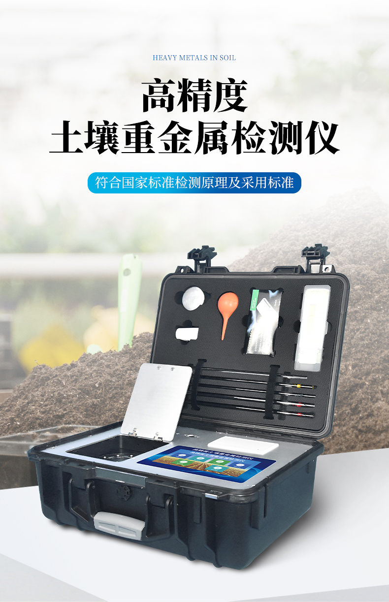 土壤重金屬污染問題日益嚴(yán)重,造成土壤耕作層內(nèi)的鎘、銅、砷、鉻、汞、鐵、鋅、錳、銅、鎳、鋁、氟、鈦、硒等重金屬大量富積、積累,成為當(dāng)下面臨的主要環(huán)境問題之一。土壤中的重金屬通過在作物體內(nèi)富集進(jìn)入食物鏈,對人畜健康造成嚴(yán)重威脅。有色金屬礦山的開采、 工業(yè)“三廢”的排放、含重金屬廢棄物堆積、農(nóng)業(yè)生產(chǎn)中的污水灌溉,農(nóng)用化學(xué)藥品的不合理使用等,都可能導(dǎo)致有害重金屬元素直接或間接進(jìn)入土壤,導(dǎo)致土壤、作物、果蔬、水質(zhì)、水產(chǎn)品等重金屬含量嚴(yán)重超標(biāo)。但是當(dāng)前重金屬測定方法測定速度慢、步驟繁瑣且儀器昂貴。基于這種形勢,我們開發(fā)出了重金屬快速測定方法。