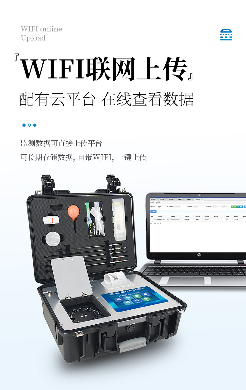 6、儀器標(biāo)配wifi無線上傳、4G聯(lián)網(wǎng)傳輸、GPRS無線遠(yuǎn)傳功能,快速上傳數(shù)據(jù)。